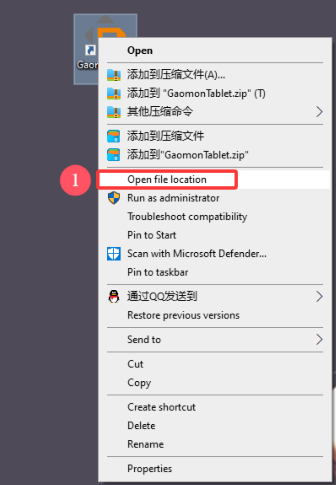 - Right-click the GAOMON icon on your desktop and select "Open file location."