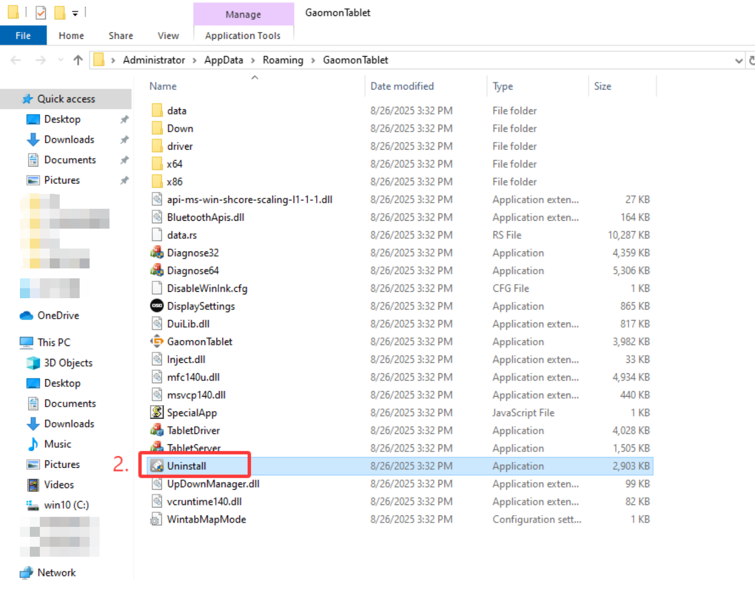 - Locate and double-click the "Uninstall" option to uninstall the GAOMON driver.
