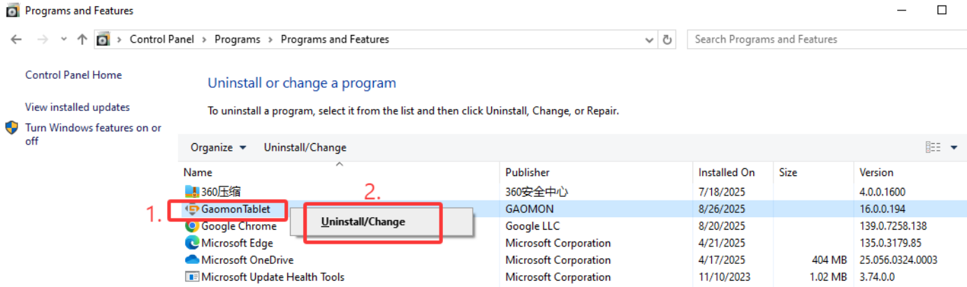 - Locate the GAOMON tablet. Right-click on "GAOMON tablet" and select uninstall.