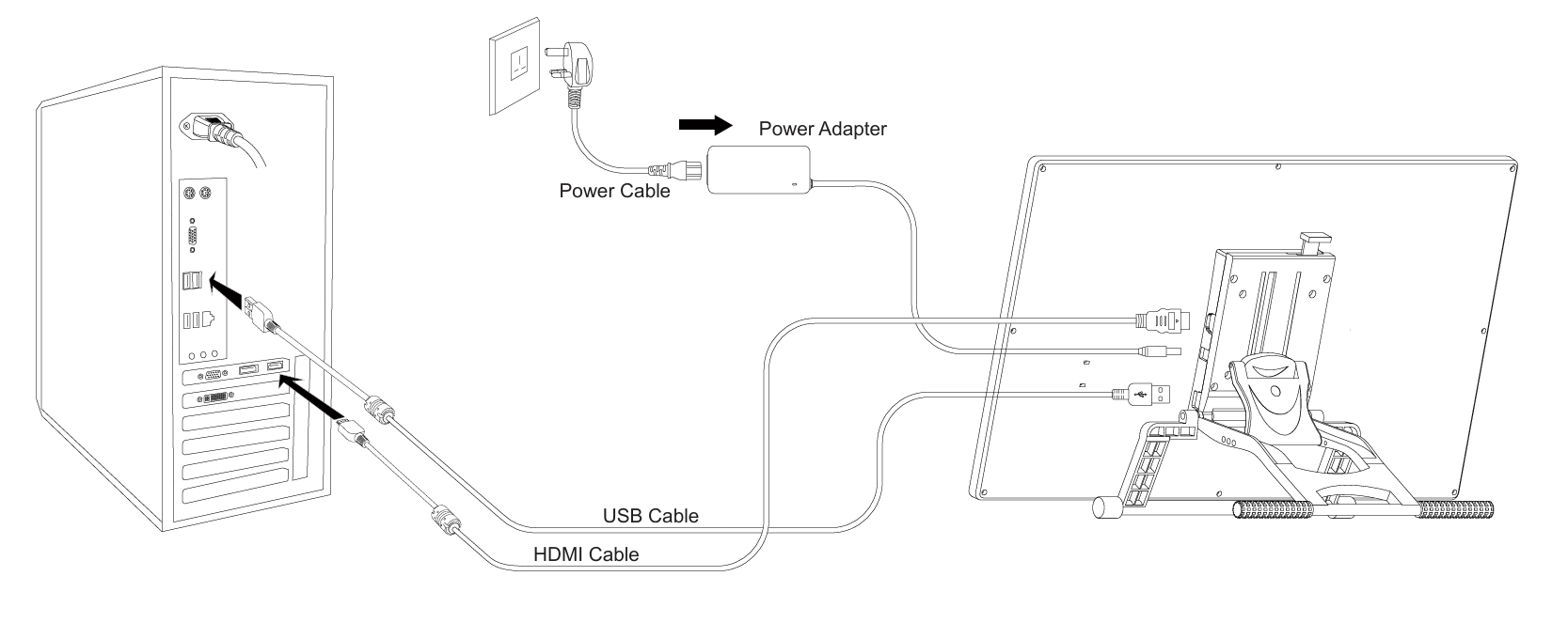 HDMI cable (for video signal) - for a desktop with a separate graphics card (GPU), please connect this cable to the GPU, not to the motherboard.