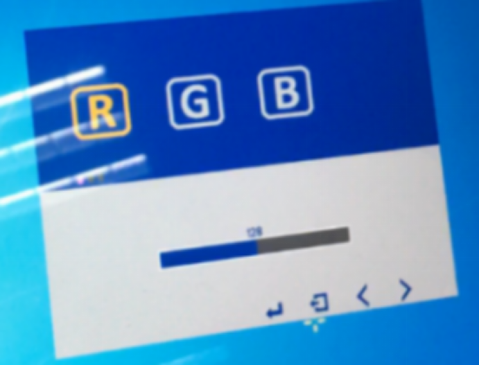 - Adjust Red, Green, and Blue values until the display color looks balanced.